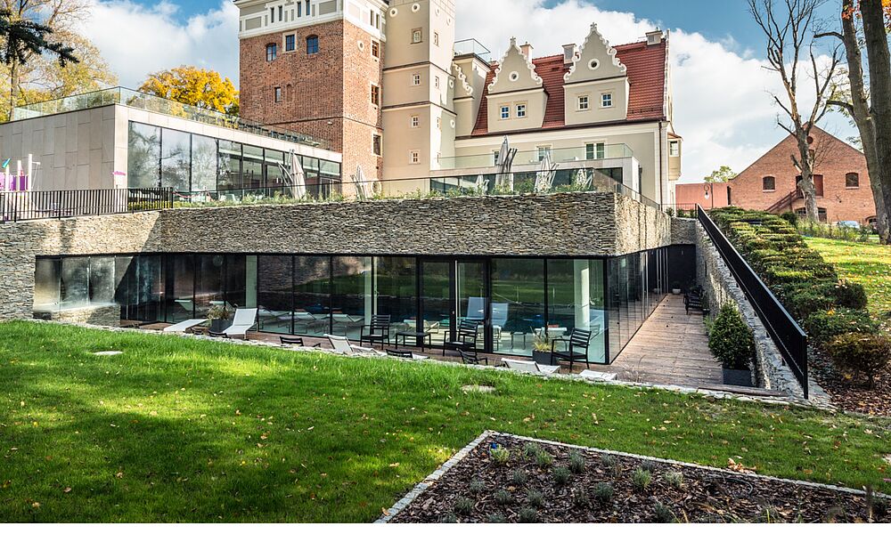 scheint das Hotel Zamek Topacz Resort & Art Spa in Ślęza zu sein. Denn unter den drei großen Gebäuden befindet sich auch ein Schloss aus dem 18. Jahrhundert, das liebevoll und gleichzeitig modern renoviert wurde – mit eleganter Einrichtung und perfekt für Hochzeiten. Für diese, sowie für viele anderen Veranstaltungen bildet der malerische Garten rundum mit kleinem See die perfekte Kulisse. Überhaupt lädt das großzügige Terrain auf 11 Ha nicht nur zu Outdoor-Aktivitäten, sondern auch zu Konzerten und Musikveranstaltungen ein. Ein weiteres Gebäude beherbergt eine Kunstgalerie mit regelmäßigen Ausstellungen und Auto-Freaks werden sich im Oldtimer-Museum verlustieren. Während man im Schloss den Spa-Bereich mit Saunen und Pool und das Restaurant „Adele“ mit internationaler Küche zur Verfügung hat, übernachtet man in der Remise ganz im englischen Stil – mit viel Holz, kariertem Stoff und gemütlichen Möbeln. Alles in allem kann man diese Unterkunft nur wärmstens empfehlen, zumal sie auch nur eine halbe Stunde vom Flughafen in Breslau entfernt ist. Direkte Flugverbindungen gibt es von Wien (Ryanair), München (LH) und Zürich (Swiss).