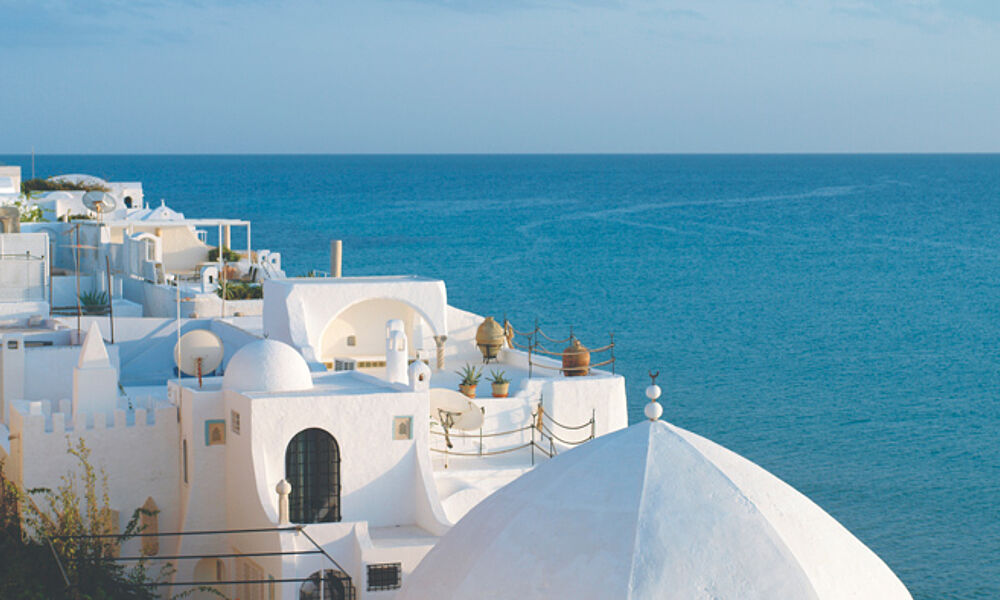 Ein Katzensprung mit rund 2 Stunden Flugzeit ist es ins nördliche Afrika – da kann man sich wirklich nicht beschweren. Dazu kommt noch, dass Tunis Air das Golfgepäck gratis befördert. Am Flughafen in Port El Kantaui, Enfidha oder Tunis wartet dann schon der Hotel-Shuttle und nachmittags der 1. Abschlag auf einer der Golfanlagen in der Nähe. Perfekt für einen Kurztrip oder mehr, falls man noch die kulturellen Highlights, wie die Ausgrabungsstätten von Karthago, den Künstlerort Sidi Bou Said mit seiner weiss-blauen Architektur oder das Bardo National Museum in Tunis mit der weltweit bedeutendsten Sammlung römischer Mosaiken besichtigen will. Diese Chance sollte man sich nicht entgehen lassen – auch das Schmökern in den Medinas oder den berühmten Minztee in einem der Einheimischenlokale an der Marina von Port El Kantaui.