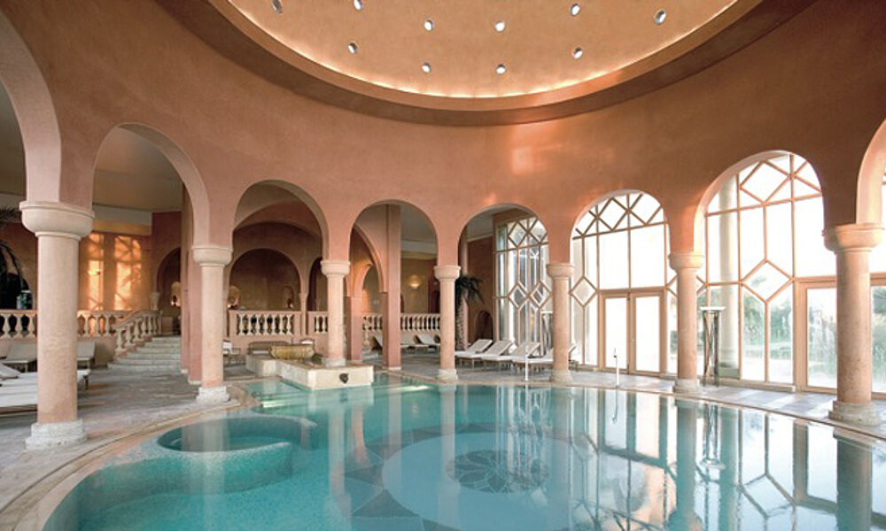 Zumindest ist er der Neueste im Stadtteil Gammarth mit Blick auf den Golf von Tunis. Konzipiert wurden die 18 Löcher von Robert Trent Jones jun., der diesen umweltfreundlichen Par 72 Platz zwischen dem Meer und einem Salzsee, im Herzen eines Naturschutzgebietes anlegte. Deshalb trifft man zwischen den ondulierten Fairways mit teilweise Links-Charakter und den 14 Seen auf Wasservögel und allerlei Getier. Trotz dem flachen und übersichtlichen Layout hat auch dieser Platz seine Tücken – vor allem sind es die gut gepflegten und schnellen Grüns, die man über massenhafte Bunker erstmals erreichen muss. Das architektonisch wunderbar konzipierte und riesengrosse Clubhaus ist nicht nur als 19. Loch beliebt. Auch Nichtgolfer schätzen hier Speis und Trank. Freies Spiel hat man hier wenn man im gleichnamigen 5-Sterne Hotel, einem Leading Hotel oft he World“ logiert. „The Residence Tunis“ hat auch nach seinem 20 jährigen Bestehen nichts von seinem arabisch-andalusischem Charme verloren. Edel und geschmackvoll in der Einrichtung, bietet das Hotel einen harmonischen Mix aus mediterranem und orientalischem Flair. Im weithin bekannten Spa- & Thalasso-Zentrum „Les Thèrmes Marins de Carthage” kann man sich nach allen Regeln der Kunst therapieren oder einfach nur verwöhnen lassen. Zum privaten Strand promeniert man durch eine perfekt angelegte Parkanlage. www.theresidence.com