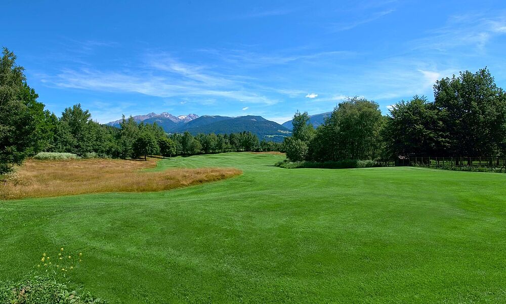 Eigentlich müsste man den Platz ja auch vom Kronplatz aus sehen, denn er war ja namensgebend für die ersten 4 Löcher, die schon im Jahr 1993 eröffnet wurden. Nahe dem Sportplatz in Reischach wurden infolge die nächsten 6 Löcher gebaut um dann im Jahr 2005 als 9-Loch GC Pustertal zu firmieren. Wann die nächsten 9 Löcher gebaut werden, liegt allerdings in den Sternen. Was uns hier besonders gefiel: Loch 2 mit kleinem Dogleg und Wasser vor dem Grün, Danke für das PAR auf der 3 (Par 3), eine kurze Rast vor dem Anstieg auf Loch 4 in einem alten Seilbahnsessel und ein Dogleg mit nachfolgendem schmalem Fairway und Wasser an der 5. Zum Loch 6 mussten wir ganz schön bergauf um dann durch den Wald zur Bahn 7 zu kommen. Hier wird man mit einem tollen Abschlag ins Tal belohnt, so man nicht in der Bunker-Landschaft landet. Eine Birdie-Chance zum Schluss bietet die 8 bevor der Abschlag auf der 9 nochmals ein wenig Challenge bietet, weil er schmal durch die Bäume auf ein Dogleg nach links trifft und vor dem Grün noch Bunker warten. Unser Facit: Auf jeden Fall eine Runde wert, zumal der Golfplatz bereits 2016 die Umweltzertifizierung „Impegnati nel verde“ des italienischen Golfverbandes FIG im Bereich Energie erhalten hat.