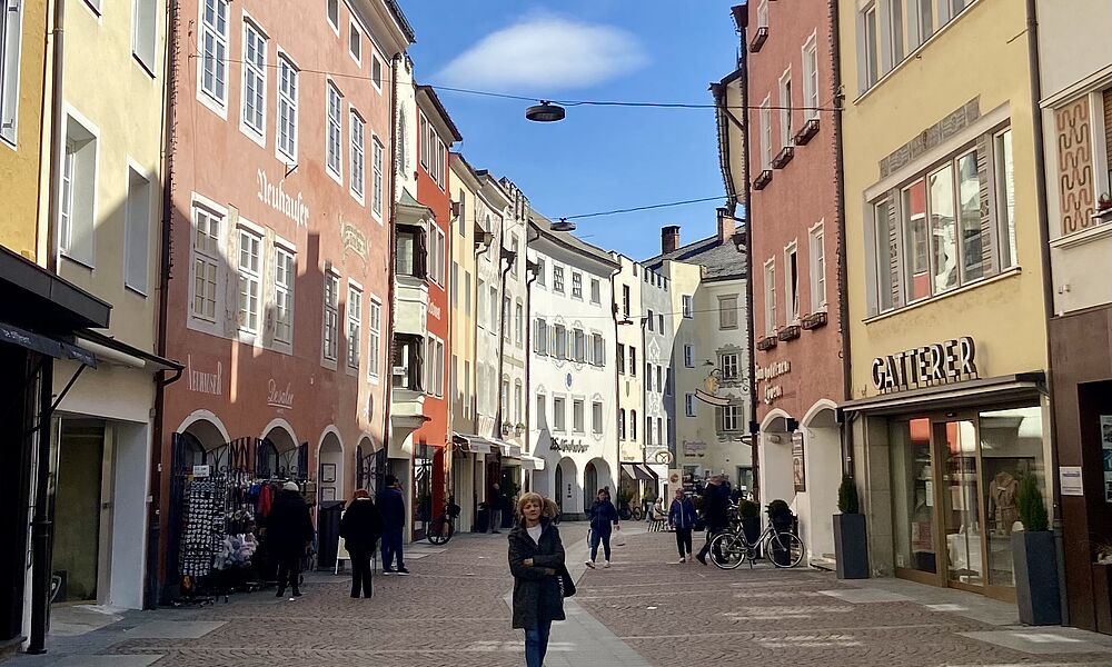 Den besten Blick auf das schon im zarten Grün leuchtende Pustertal mit seinen Orten Bruneck, Olang und St. Vigil hat man natürlich vom Kronplatz aus. Was liegt da nicht näher als das mittelalterliche Städtchen Bruneck zu besichtigen. Gerade dann, wenn mittags der Schnee schwer und die die Pisten abgefahren sind. Also hinein in die Altstadt von Bruneck! Durch eines der alten Stadttore erreichen wir die liebliche Stadtgasse, wo kleine Läden mit Südtiroler Schinken und allerlei Modegeschäfte sowie gemütliche Cafés und Bars zum Flanieren einladen. Am Rathausplatz trafen wir auf den alljährlichen Ostermarkt mit allerlei Selbstgemachten, Kunst, Blumengestecken und österlichen Geschenkideen. An die frühlingshaften Temperaturen mussten wir uns als Skifahrer erst gewöhnen. Als Golfer waren wir heilfroh darüber.