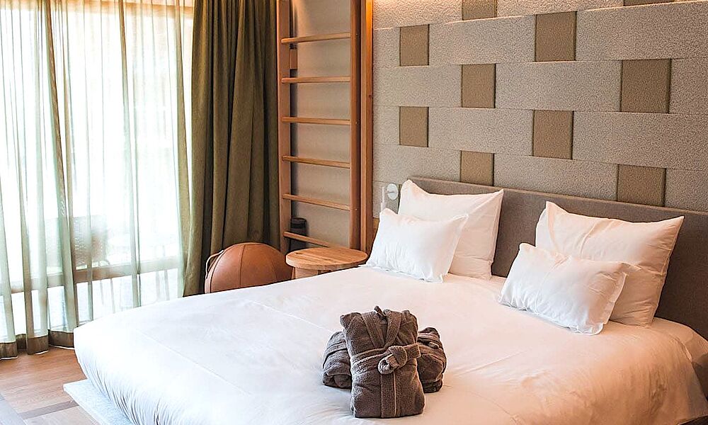 Auch wenn das Hotel ein Eldorado für Sportbegeisterte ist, so wird es jeden hier irgendwann in die „heiligen Räume“ des Spa´s ziehen, dem ein eigenes 5-stöckiges Gebäude gewidmet ist. Im Erdgeschoss befinden sich die Rezeption mit Lounge, ein großzügiger Fitness- sowie separater Yoga- und Bewegungsraum, zwei Ruhe - (namens Gartenstube und Berggestein), acht Anwendungsräume und ein separates Private Spa mit Sauna sowie ein eigenes Hamam. Darüber geht es dann zum 25 Meter Sport-Pool, der in der Sommerwiese glänzt und im 2. Obergeschoß findet man dann endlich die Biosauna und zwei Terrassen mit herrlichem Blick auf Berg und Tal. Das ist aber noch nicht alles, denn das Highlight mit Panoramasauna und Rooftop-Pool liegt noch darüber und ganz oben, im 5. Obergeschoß relaxt man dann zum Sonnenuntergang in gemütlichen Liegemöbeln. So schön kann ein Tag ausklingen!