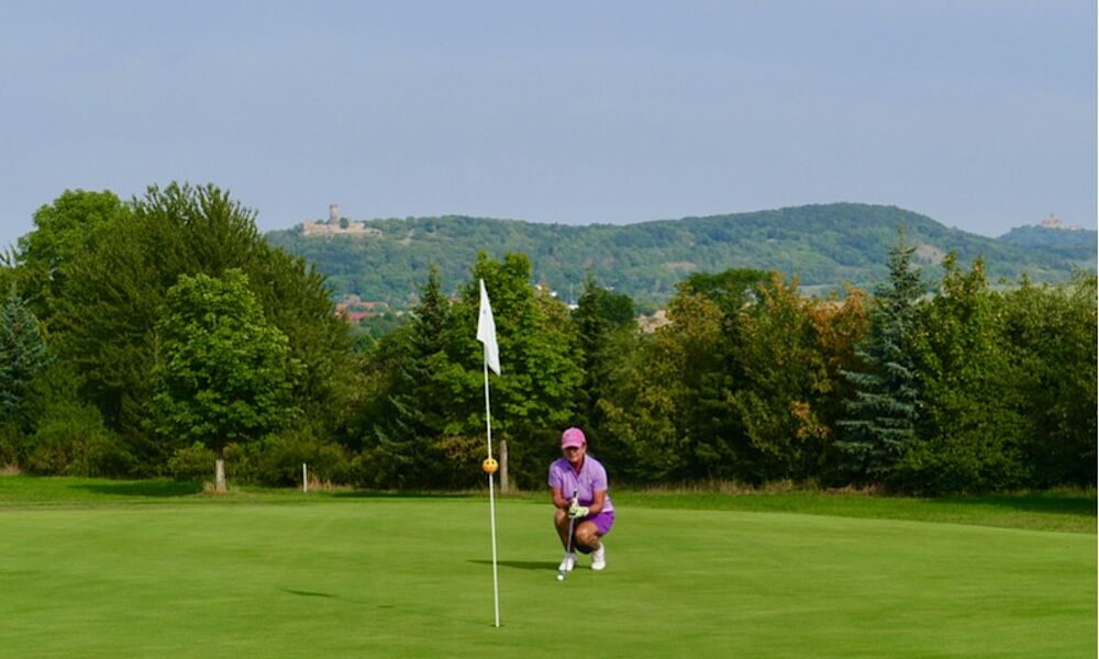 Auf dem Weg nach Sachsen-Anhalt kommen wir an dem „Drei Gleichen“ Golfplatz nicht vorbei. Einerseits, weil er der älteste Platz Thüringens ist und andererseits den besten Ausblick auf drei Burgen bietet, die man gut von vom 6. Abschlag sieht. Davor hat man sich über das längste Par 5 (615 Meter) mit Dogleg und durch Baumreihen eskortierte Bahnen gekämpft. Wasser spielt auf den 18 Bahnen keine Rolle, eher das hügelige Terrain mit langen Geläufen. Das modern konzipierte Clubhaus mit Restaurant „Taubennest“ ist, wie auch der Proshop in einem alten Fachwerkhaus untergebracht. Ein entspanntes Spiel ist hier jedenfalls garantiert.