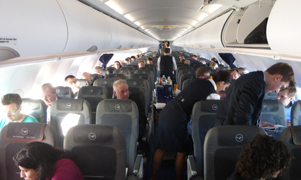 Ansonsten: Leises Fluggefühl und eine geräumige Kabine überzeugen. Eingesetzt werden soll der Lufthansa A320neo, nach Auskunft einer Flugbegleiterin, auf Flügen von bis zu zweieinhalb Stunden Dauer. Denn es gibt nur mehr in der vorderen Küche Öfen um Essen zu erwärmen. In der Economy Class sind somit auf diesen Flügen keine warmen Speisen vorgesehen.
