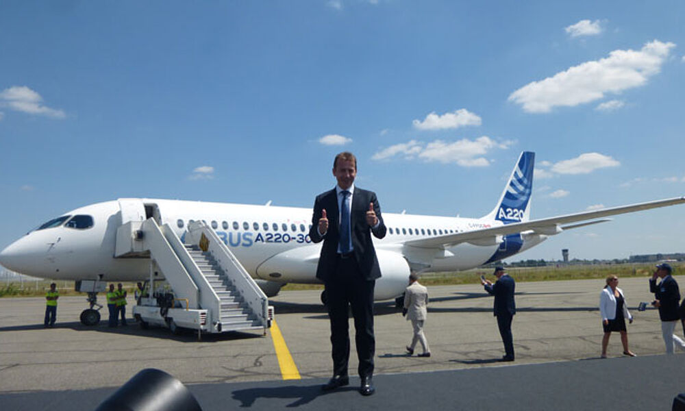 „Wir sind glücklich und stolz, dieses Produkt in unserer Familie begrüßen zu können“, sagt Airbus-Chef Guillaume Faury. „Damit es Erfolg hat, müssen wir es jetzt verkaufen.“ A220-Verkaufschef David Dufrenois will nun allein in diesem Jahr Bestellungen für mindestens 100 Exemplare einholen. Den Bedarf an Flugzeugmodellen wie dem A220 schätzt Airbus in den nächsten 20 Jahren auf rund 6000 Exemplare ein. Mindestens die Hälfte davon will Airbus davon für sich verbuchen.