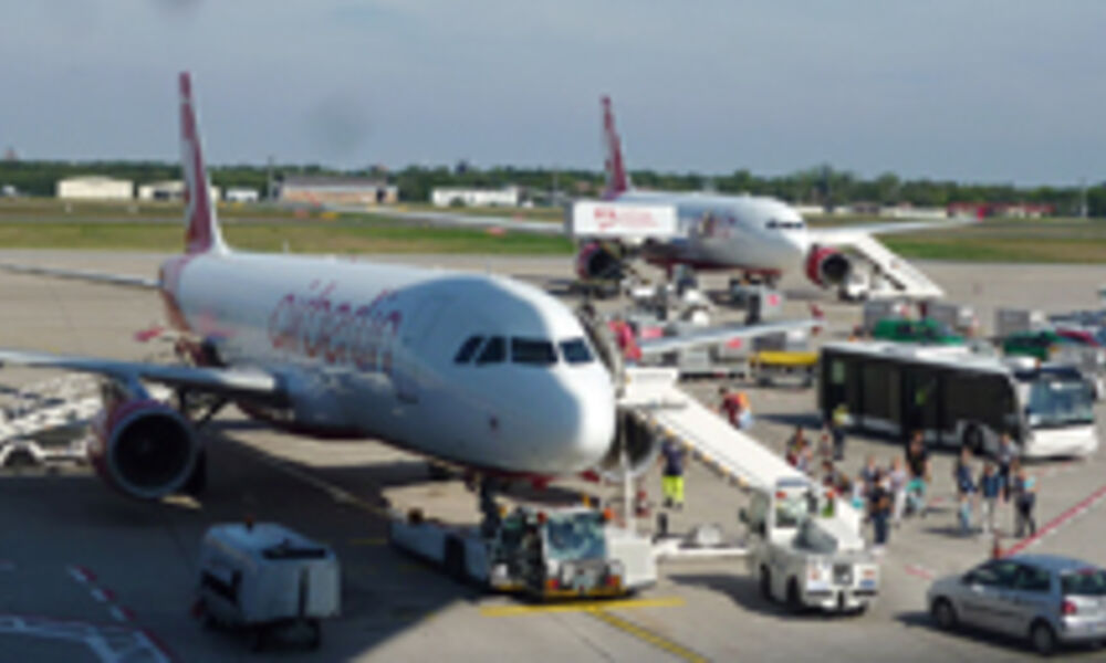 Reisende zu spüren. Bei der Vorfahrt am Flughafen Tegel ist es eng. 11.30 Uhr, der Taxistreifen ist voll. Auf den Grünflächen vor dem Terminal sieht es aus wie in Indien oder Afrika, wo Unmengen an Passagieren lieber im Freien warten als in den stickigen Hallen. Im Gebäude selbst, sind Sitzplätze zu dieser Tageszeit in den schmalen Bereichen Tegels durchaus Mangelware. Wie wird es hier zugehen in den morgendlichen Abflugspitzen? Vor dem Air Berlin Schalter für USA Flüge behindert die wartende Menschenschlange den dichten Passagier-Fluss. Der Weg zum Air Berlin Terminal Bereich C, ein weiteres Flickwerk an erweiterten Terminal-Bereichen, ist dem entsprechend mühsam. Passagiere überall. Am Schalter 65 für den Air Berlin Flug nach Linz gibt es jedenfalls Null Minuten Wartezeit.