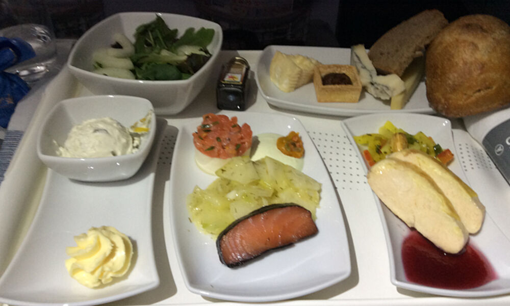 Connoisseur Circle hat einen Business Class Test der Condor am 1. Juni von Frankfurt nach Cancun absolviert, worüber detailiert in einer der nächsten Connoisseur Circle Ausgaben berichtet werden wird. Auf unserem Testflug kam der neue Zulieferer erstmals zum Einsatz. Die Speisekarte der Condor kann sich nach wie vorsehen lassen, welche, wohlgemerkt, schon immer sehr umfassend bei Mahlzeiten war. Auf unserem Flug, dem Premieren-Tag von Gate Gourmet, konnte sich Connoisseur Circle überzeugen, dass die Qualität gewährleistet wurde. So gab es beim Lunch-Service auf den Mittagsflug nach Cancun zwei verschiedene Vorspeisen. Gleich deren drei Hauptspeisen standen zur Auswahl, wie frischer Stangenspargel mit Kalbsfilet Medaillon oder der Zackenbarsch auf Curry Sahnesauce. Als vegetarische Variante Teigtaschen mit Ricotta und rotem Pesto gefüllt. Aus der Welt der Champagner wird französischer Duval LeRoy, Beut Reserve gereicht. Eine charmante Weißwein und Rotwein-Auswahl stimmten ein schönes Mittagessen ab.