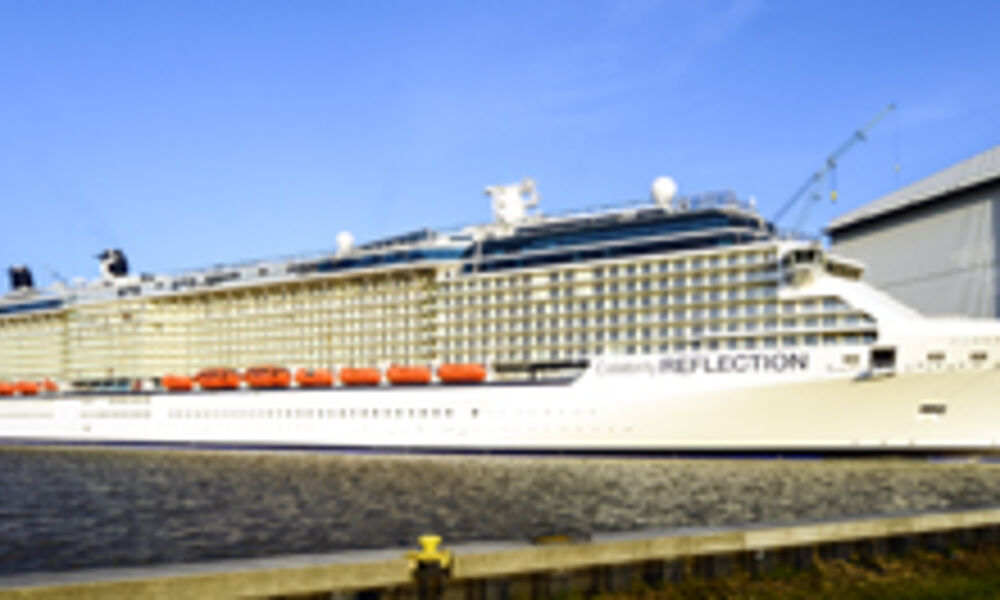 Eemshaven im Oktober. Holland gibt sich Klischeehaft. Weidende Schafe, Wiederkäuende Kühe, Windräder...aber in der Ferne sind Konturen eines gewaltigen Kreuzfahrtschiffes Ausnehmbar. Vor uns liegt das nunmehr fünfte Schiff der preisgekrönten Celebrity Solstice Klasse, die 315 Meter lange und 126.000 Tonnenschwere Celebrity Reflection.