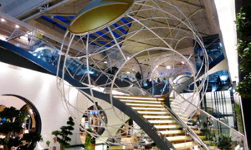 Über eine pompöse Stiege gelangt man in den neuen, Bereich der Lounge wo der Gast in einem Tee-Garten empfangen wird. Auch auf diesem zweiten Lounge-Level befindet sich ein Demel-Kaffeehaus Bereich oder etwa eine Koch-Sektion wo diverse türkische Spezialitäten angeboten werden.