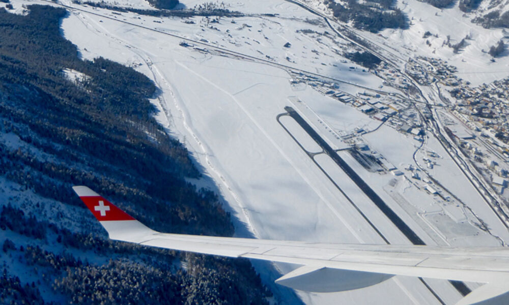 Swiss International Air Lines (SWISS), die offizielle Airline der FIS Alpinen Ski Weltmeisterschaften in St. Moritz, hatte an drei Tagen während der WM mit spektakulären Überflügen eines Bombardier CS100 gemeinsam mit der Schweizer Kunstflugstaffel Patrouille Swiss für Highlights gesorgt. Intensive Vorbereitungen waren für dieses fliegende Display, welches über St. Moritz jeweils 14 Minuten dauerte, notwendig. "Insgesamt haben wir 15 Stunden im Simulator geübt, sind rund 20 mal die Strecke abgeflogen. Na klar, das ist ein ungewöhnlicher Flug, aber da ist nichts wagemutiges dabei, alles findet innerhalb geltender Vorschriften und Limiten statt", erläutert Flugkapitän Andreas Müller bevor wir in Zürich abheben.