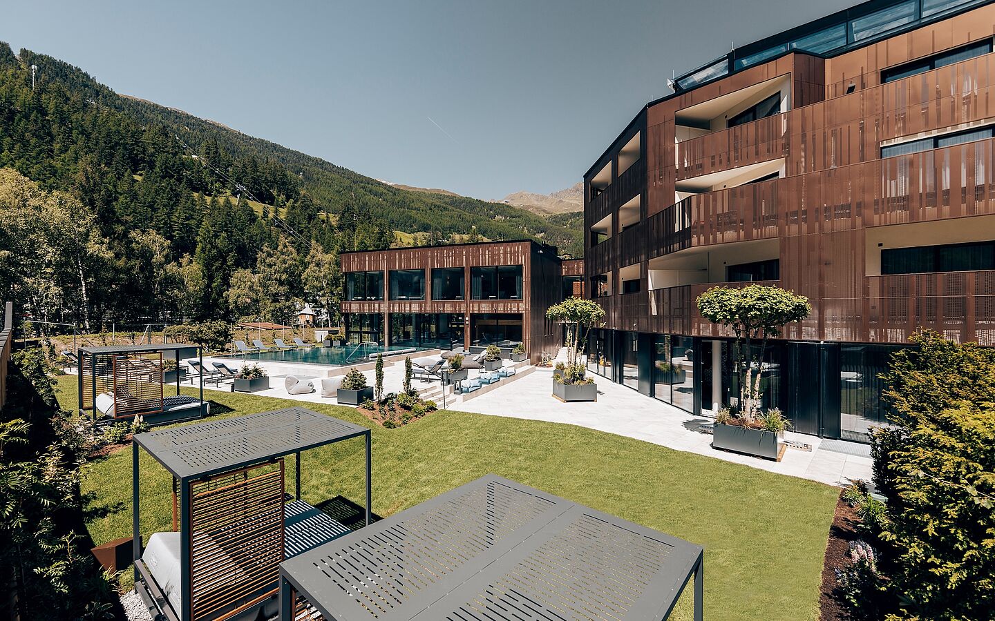 Nach einem aktiven Tag in den Bergen wartet pure Erholung: Der beheizte Outdoorpool , der lichtdurchflutete Indoorpool und die großzügige Saunalandschaft bieten Entspannung auf höchstem Niveau. Im großen Gartenbereich mit Sonnenliegen und Cabanas genießen Sie Ruhe und Panorama inmitten der Natur.