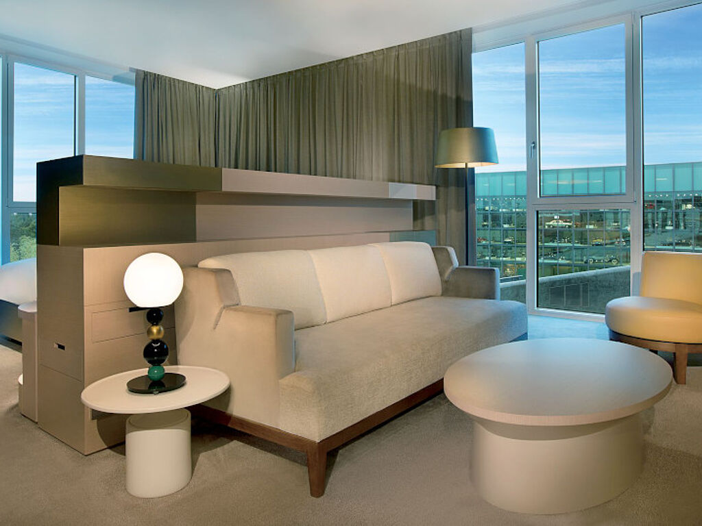 Über 600 Kunstwerke prägen das Hotel, ebenso wie die modern-klassische Ausstattung von Elliott Barnes. Die 170 Zimmer und Suiten sind ebenso gehalten: Beheizte Natursteinfußböden in Bad und Flur, integrierte Dampfbäder und Multifunktionstische, die für Meeting und Leisure gleichermaßen geeignet sind. Die Aussicht durch die Panoramafenster ist dem Thema geschuldet: Hier und überall im Hotel konzentriert sich der Fokus auf die Autostadt und das Volkswagen-Kraftwerk.
