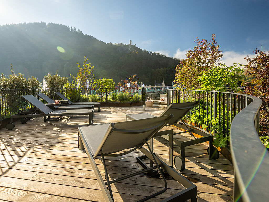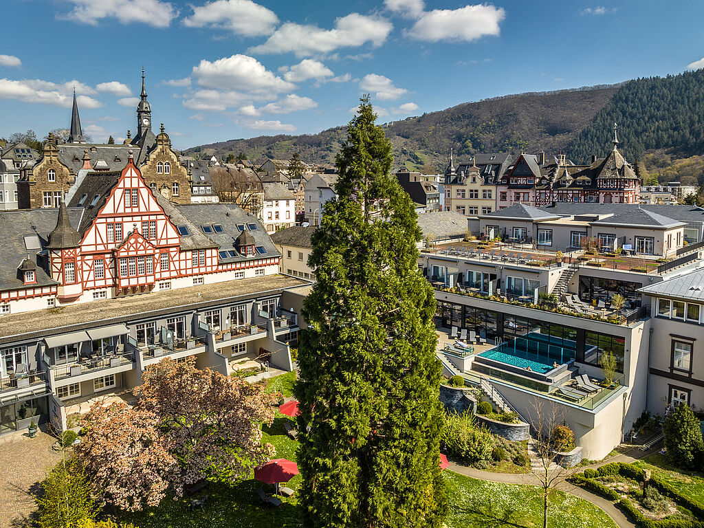 Gäste erwartet eine Vielzahl an Behandlungsräumen, eine wavebalance®-Wasserliege, ein Lady- sowie Private Spa, verschiedene Ruhezonen und Sonnenterrassen, Fitness- und Yogastudio, Kneippbecken und unterschiedlichste Saunen. Ein Eisbrunnen, ein eisiger Schneeraum sowie der besondere Infinity Pool sorgen für Erfrischung. Von sämtlichen Bereichen ist der Moselausblick garantiert.