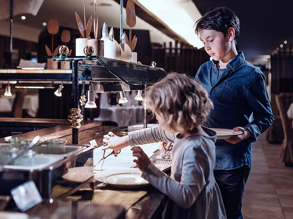 Für jedes Alter. Für jeden Geschmack. Für den kleinen und den großen Hunger. Auch Kinder lieben die vielfältige und gesunde Ellmauhof-Küche, die mit abwechslungsreichen Köstlichkeiten jeden Tag aufs Neue überrascht. Regionalität, vielfältige Geschmacksrichtungen und liebevolle Zubereitung sorgen für hochwertigen Genuss zu jeder Tageszeit: großzügiges Frühstücksbuffet, Mittagsbuffet, nachmittags Brunch, Gourmet-Wahlmenü, Live Cooking und Kinderbuffet zu Mittag und am Abend. Auch die kleinen Gäste erhalten ein umfangreiches Genussangebot mit der Ellmauhof Kids Kost: gesunde, kindgerechte Gerichte, buntes Babybuffet von Hipp, selbstgemachte Breie, frisches Obst und Keks-Allerlei. Mit dem betreutem Kindertisch zu Mittag und am Abend und dem Early Lunch & Dinner Buffet kann der kulinarische Genuss individuell abgestimmt werden.
