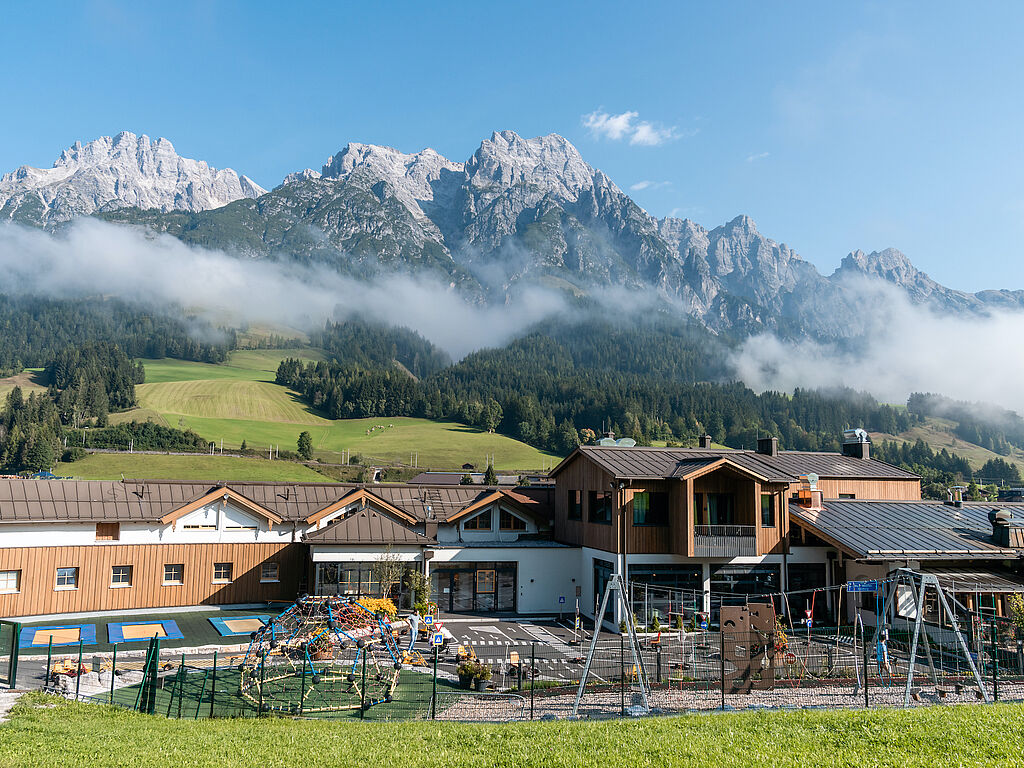 Der großzügige gestaltete Innen- und Außen-Sportpool mit 20m Schwimmlänge und die knapp 60m lange Wasserrutsche begeistert nicht nur die kleinen Gäste. Für Familien wurde eine eigene Familiensauna mit Panorama-Ruheraum direkt neben der Poolanlage eingerichtet. Für die Kids gibt es viele Spielmöglichkeiteiten (in- & outdoor) und ganz neu eine Indoor-Trampolinhalle mit Valo Jumps.