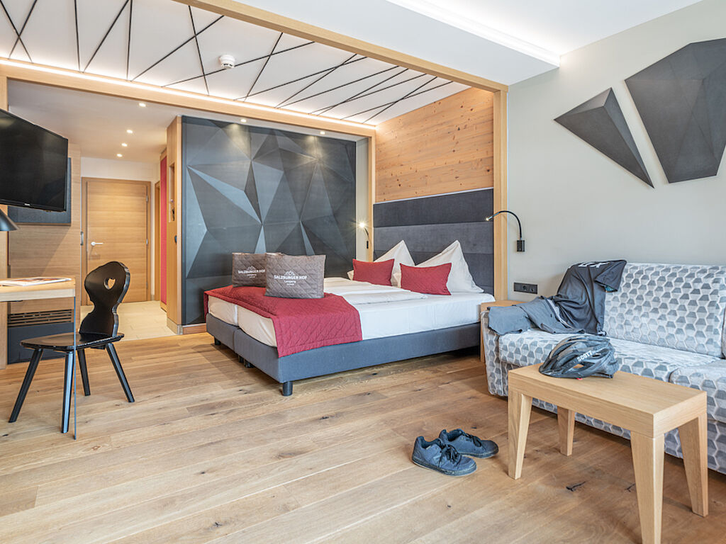 Die Zimmer und Suiten sind mit viel Liebe zum Detail mit Materialien aus der Region, wie etwa gebürstetem Fichtenholz, eingerichtet und tragen sportliche Namen wie Relax Zimmer oder Recharge Suite. Für Familien eignet sich besonders die großzügige Hangout Suite in sportlichem Design mit getrennten Wohn- und Schlafbereichen und offenem Bad.