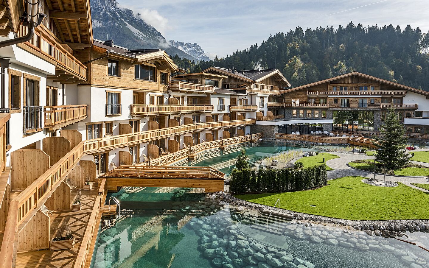 In der Kaiserlodge am Wilden Kaiser mit: Familien Spa und Pool am Dach, Restaurant Kaisers Deli, Ski- und Wanderverleih, Workshop-Schmiede, hauseigenem Naturbadesee, Kids Club und Adults-Only Natürlich.Spa.