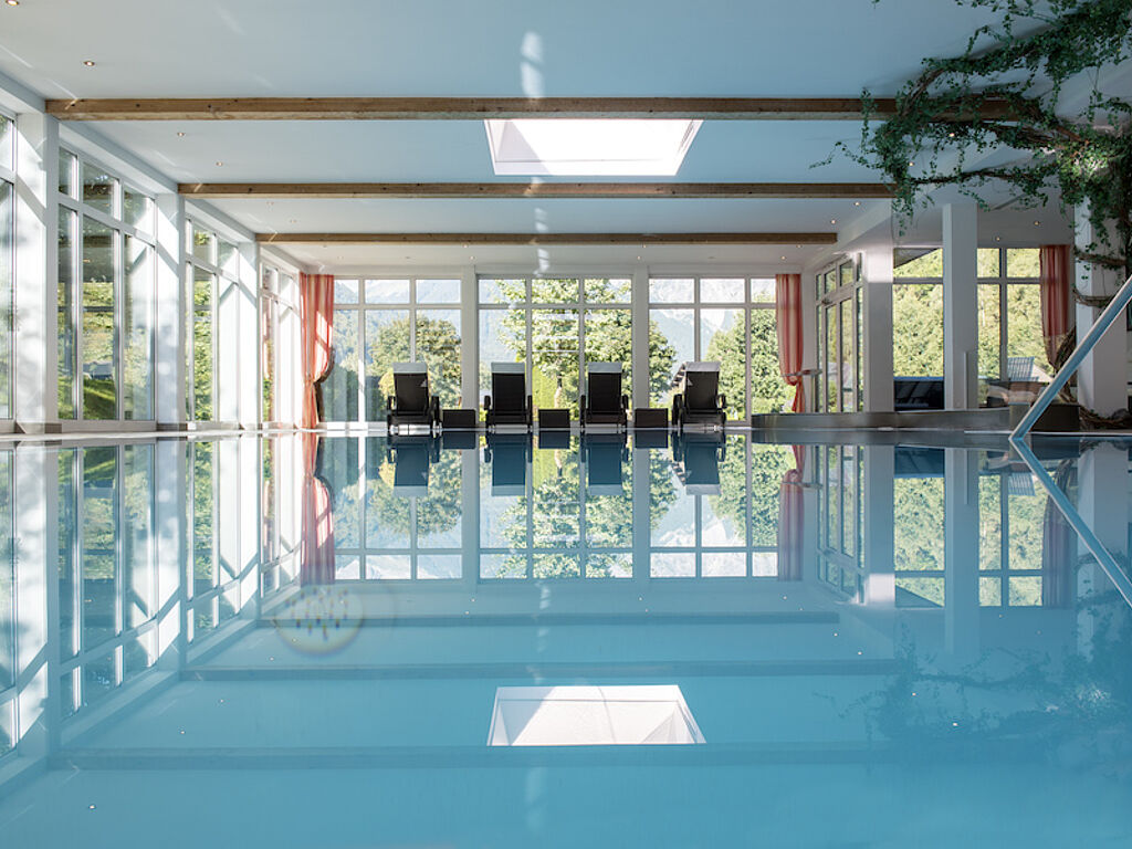 Dies gelingt auch bestens in der vielseitigen Wellnesslandschaft auf über 1.000 m² mit großem Panorama-Innenpool, Komfortliegen und Kuschelkörben, umfangreicher Saunawelt und herrlichem Massage- und Beautyangebot.