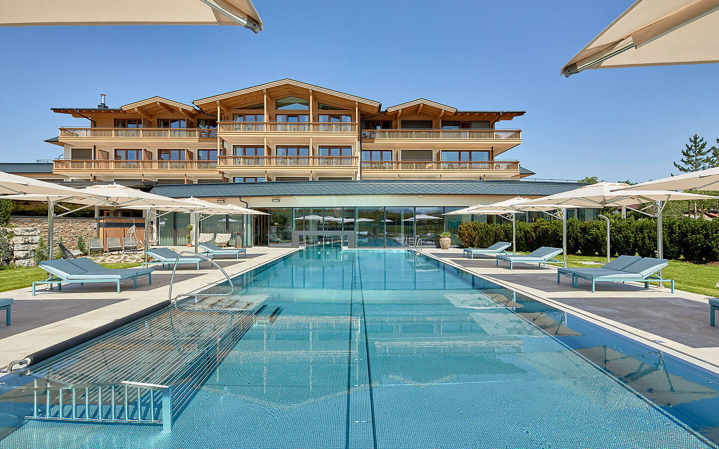 Der großzügige Premium LaschenskySpa ist ein herrlicher Ort zum Entspannen in der Umgebung der Salzburger Bergwelt. Ein Innen- und Außenpool sorgt für Badespaß für die ganze Familie, verschiedene Saunen und Wellnessbehandlungen machen das Wellnesserlebnis perfekt.