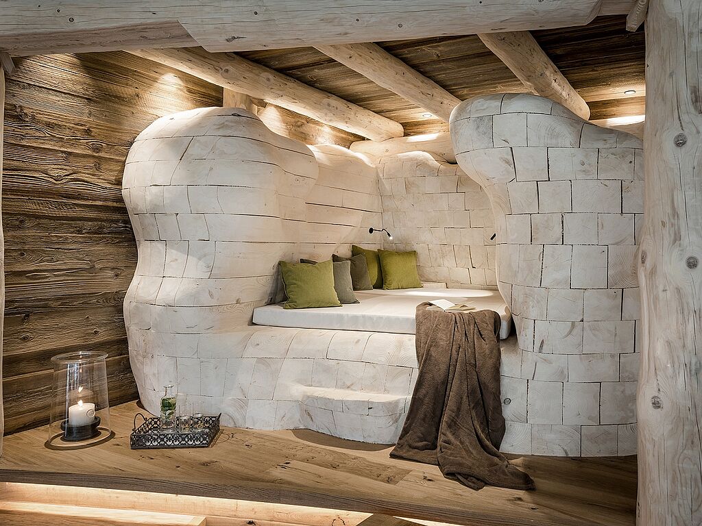 Alle 65 Studios und Suiten sind zur Tal- oder Südseite ausgerichtet und holen dank großer Glasfronten die umliegende Natur nach innen. Auch in den Zimmern wurde Hand angelegt und dank neuer Materialien wie leinenbezogenen Wänden und Goldadern zeigt das Hotel, wo sein Name herkommt. Als exklusive Rückzugsorte mit eigenem Wellnessbereich begeistern drei SPA.SUITEN mit wahlweise 60 oder 90 Quadratmeter. Eine eigene Sauna, (wahlweise finnisch, Infrarot oder Saunarium) sorgt garantiert für individuelles Wohlbefinden. Übertroffen wird dies nur noch vom beeindruckenden Spa Chalet.