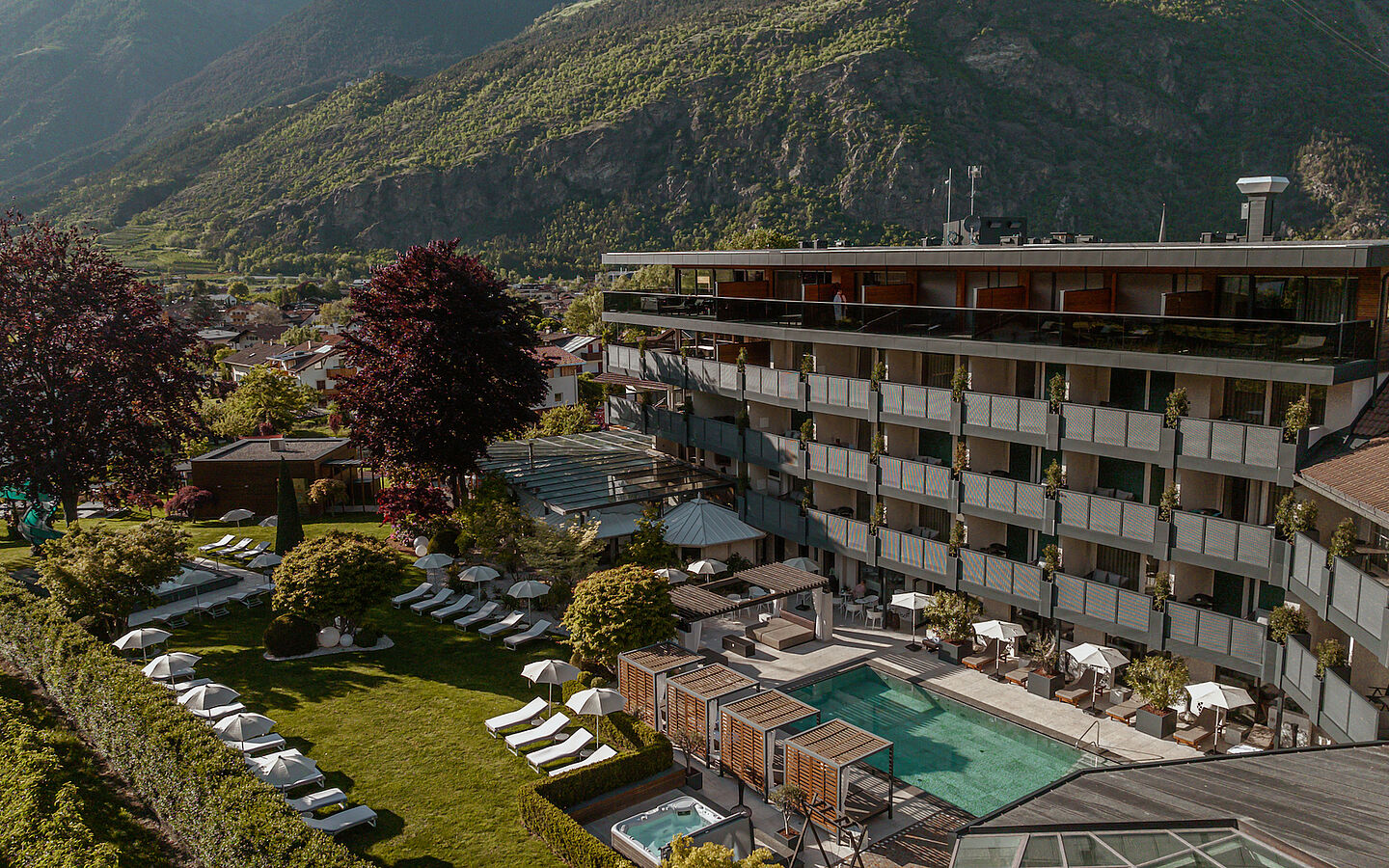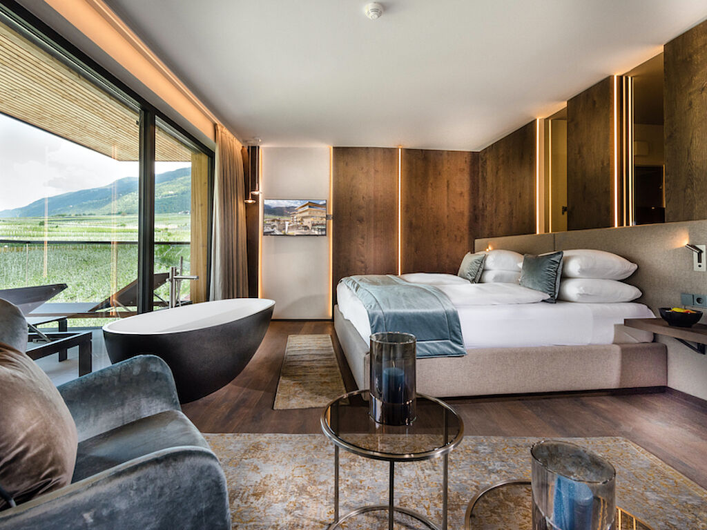 Die Zimmer und Suiten sind mit hochwertigsten Naturmaterialien ausgestattet und vereinen moderne Elemente mit denen der Vinschgauer Tradition. Neben den Penthouse Suiten, welche über einen eigenen Whirlpool auf der Terrasse verfügen und den Luxury Suiten sind auch die Familysuiten ein wahrer Hit. Die geräumigen Familiensuiten begeistern u. a. mit zwei Schlafzimmern und gemütlichen Sitzecken.