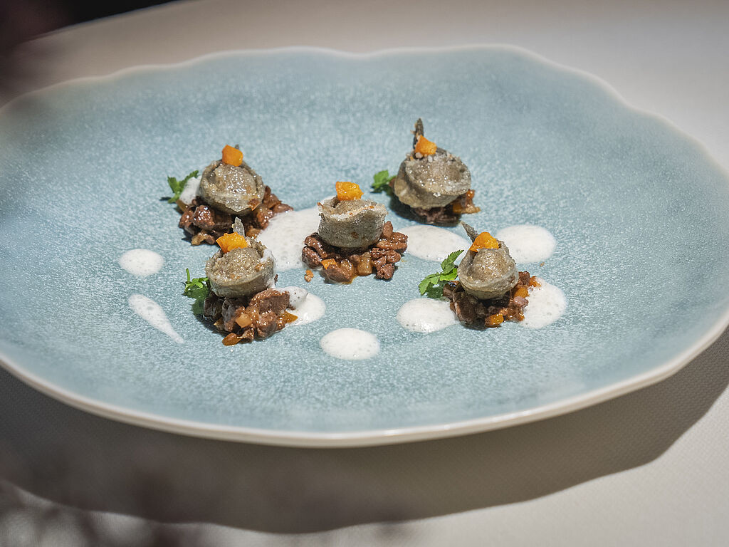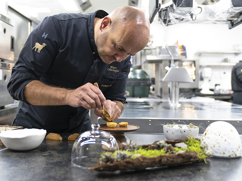 Die Lampl Stube ist das Gourmet-Restaurant des Hotels LAMM, ein kostbarer, auf Details bedachter Ort, der für eine exklusive Erfahrung konzipiert wurde. Nur drei Tische für maximal zehn Plätze, um eine einzigartige und besondere Sorgfalt auf und neben dem Teller zu bieten. Chefkoch Marc Oberhofer bietet eine Küche, die auf regionalen, hervorragenden lokalen Rohstoffen basiert, interpretiert mit einem zeitgenössischen und äußerst freien Stil. Wie die Gemälde für einen Maler, die Marmorblöcke für einen Bildhauer, die Worte für einen Schriftsteller, so sind die Gerichte für Marc das Mittel, sich auszudrücken, ein Selbstporträt, um seine Welt und Persönlichkeit gastronomisch und geschmacklich zu erzählen.