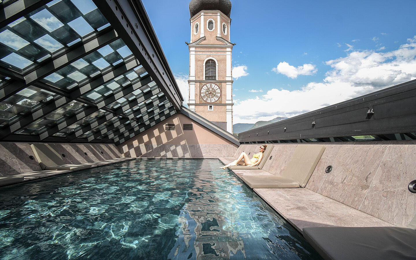 Vor dem Panorama des majestätischen Schlerns wird im Hotel Lamm auch wunderbar entspannt. Die Wellness-Oase wartet mit einer luxuriösen Saunalandschaft mit finnischer Sauna, Biosauna, türkischem Dampfbad und Erlebnisduschen auf. Über eine Verbindungstreppe gelangt man auf die Dachterrasse mit Sky Pool und Sky Whirlpool mit Blick auf den blauen Himmel über Kastelruth. Wellnessbehandlungen nach Dr. Joseph Vitalis runden das Wohlfühlprogramm ab. Bei unseren Wellnessbehandlungen verwöhnen wir unsere Gäste mit hochwertigen Produkten der Marken Comfort Zone und Bergila. Diese exklusive Kombination verbindet moderne Hautpflegeinnovationen mit der Kraft traditioneller Alpenkräuter, um Körper und Geist nachhaltig zu entspannen und zu revitalisieren.